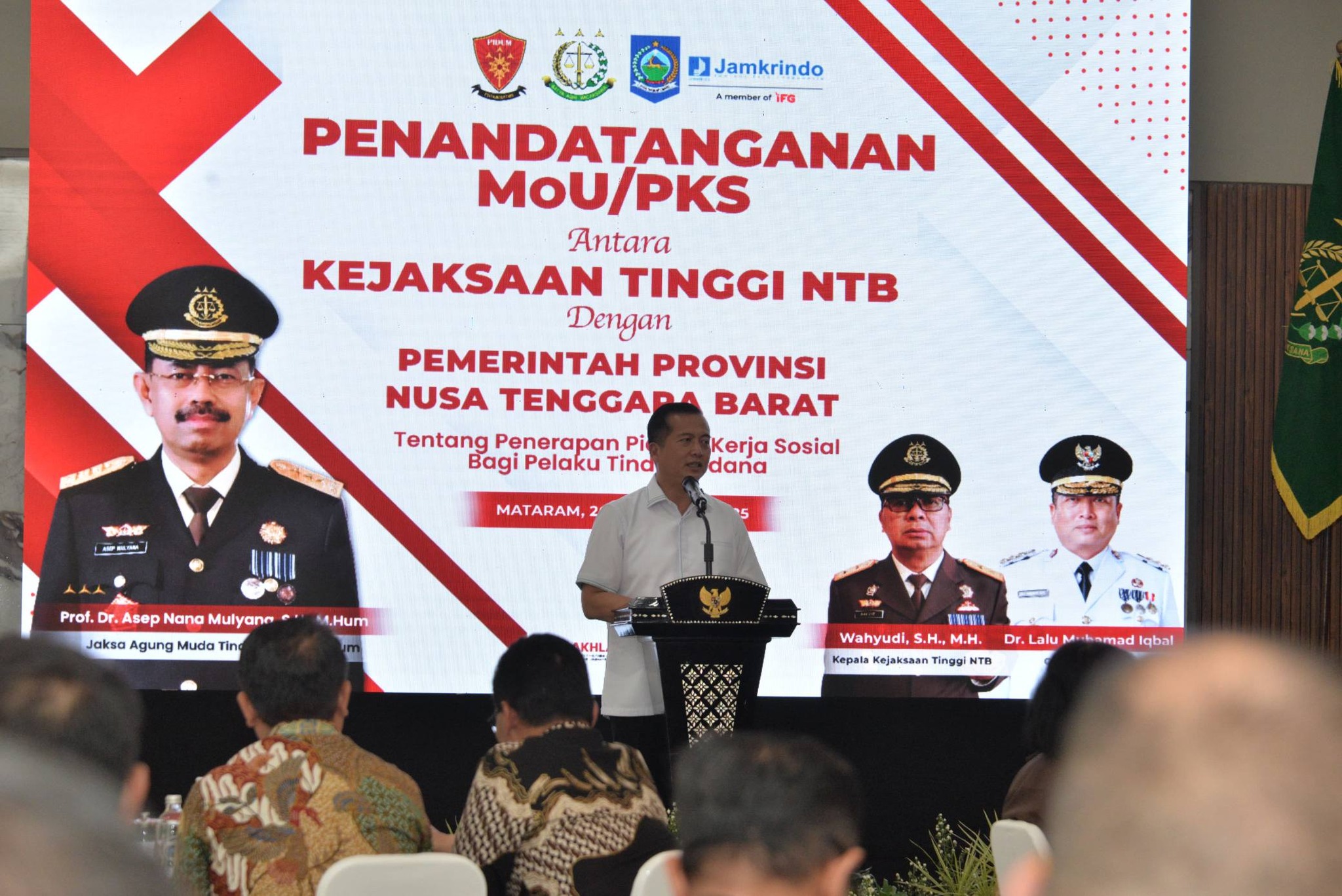 Pemerintah Provinsi NTB bersama pemerintah kabupaten/kota se-NTB dan Kejaksaan Tinggi NTB menandatangani Memorandum of Understanding (MoU) atau Perjanjian Kerja Sama (PKS) tentang penerapan pidana kerja sosial bagi pelaku tindak pidana. Penandatanganan berlangsung di Pendopo Gubernur NTB, Rabu (26/11), sebagai langkah awal menjelang implementasi Undang-Undang Nomor 1 Tahun 2023 tentang KUHP yang akan berlaku penuh pada 2026.