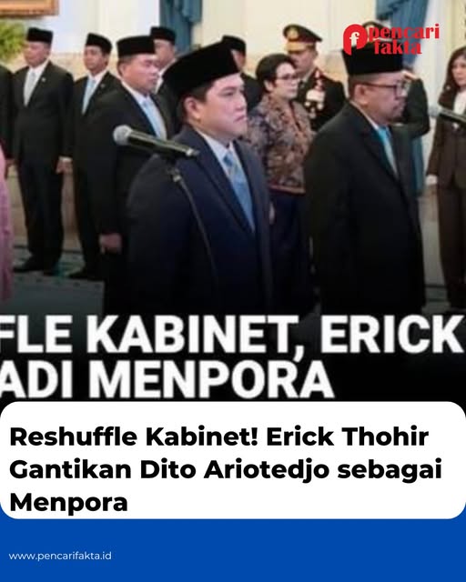 Jakarta, 17 September 2025 – Kabinet Merah Putih kembali mengalami perombakan. Presiden Prabowo Subianto secara resmi melantik Erick Thohir sebagai Menteri Pemuda dan Olahraga (Menpora), menggantikan Dito Ariotedjo yang dicopot dari jabatannya pekan lalu.