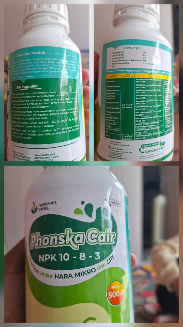 Phonska Cair NPK 10-8-3 hadir dalam kemasan praktis 500 ml dan menjadi pilihan terbaik bagi petani modern yang menginginkan efisiensi pemupukan sekaligus peningkatan kualitas dan kuantitas hasil panen.