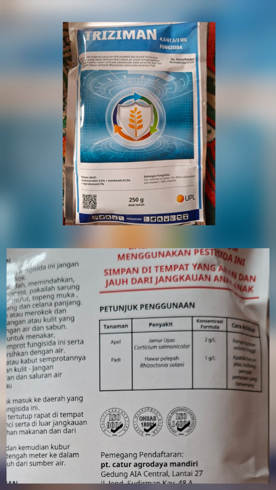 Produk perlindungan tanaman terus berkembang seiring dengan meningkatnya kebutuhan petani akan hasil pertanian yang sehat dan berkualitas. Salah satu fungisida yang kini banyak digunakan oleh petani apel dan padi adalah TRIZIMAN 4,5/67,5/3 WG, produk dari PT Catur Agrodaya Mandiri yang telah terdaftar secara resmi di Kementerian Pertanian RI dengan nomor RI.01019620217177.